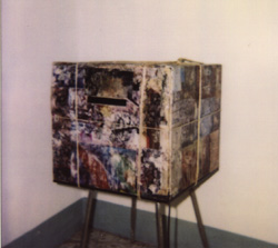 Questi, ed altri quesiti di natura più squisitamente teoretica, sono affiorati nel momento in cui‚ stata ritrovata un'opera-installazione a forma di cubo, realizzata probabilmente (ripeto probabilmente) verso l'inizio degli anni Sessanta. L'opera, che convenzionalmente chiameremo "Lotto 49" in base alla sigla che è presente su un lato dell'opera, è stata acquistata lo scorso 4 gennaio dall'ingegnere bergamasco Ettore Spaldi (noto costruttore e soprattutto fine collezionista di sculture) ad un'asta di vendita del materiale mai ritirato del deposito Torrealta.